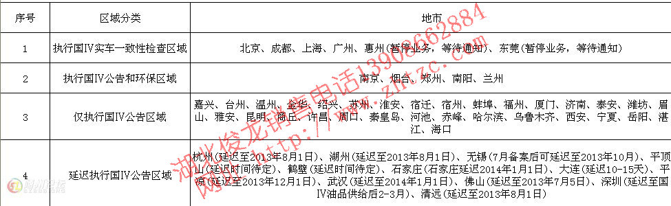 國(guó)四標(biāo)準(zhǔn)目前來(lái)看,各地實(shí)施的情況各不相同。部分地區(qū)沒(méi)有任何文件和通知,相當(dāng)于是沒(méi)有實(shí)施的時(shí)間表;部分地區(qū)傳言從莫某時(shí)候開(kāi)始實(shí)施,但沒(méi)有官方文件;部分地方暫時(shí)停辦業(yè)務(wù)觀望上級(jí)政策;部分地區(qū)已經(jīng)有了明確的時(shí)間表從某年某月開(kāi)始正式實(shí)施;部分地區(qū)已經(jīng)正式實(shí)施。正式實(shí)施的區(qū)域政策又各不相同:有些地方只是限制上戶手續(xù);有些地方需要車輛一致性;部分地方還需要做車輛一致性測(cè)試。下表可以大概看到目前各地已經(jīng)出臺(tái)政策的區(qū)域的詳細(xì)要求:
