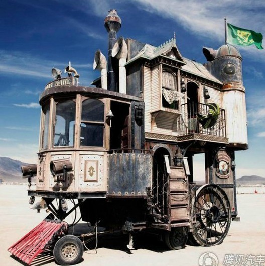 這個(gè)房車就有點(diǎn)老式馬車的感覺了,也有一點(diǎn)童話劇的風(fēng)格。